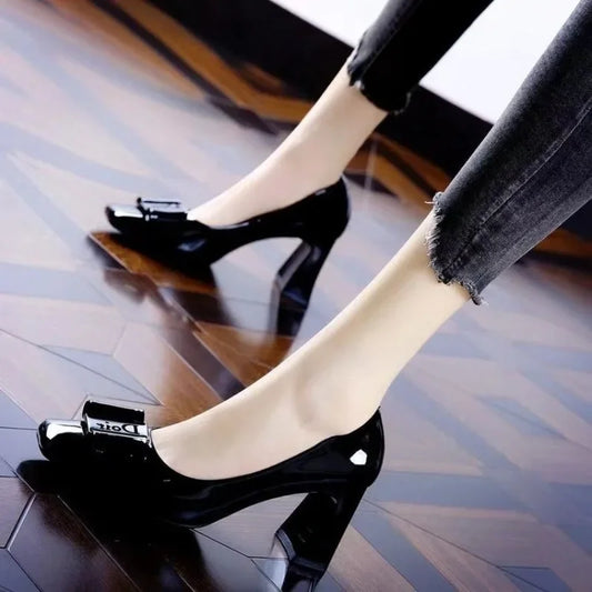 Women's Winter Thick-Heeled Cotton Shoes with Round Head Design, Suede Material, Thick and Soft Soles, Anti-Slip, Wear-Resistant, and High Boot Style.