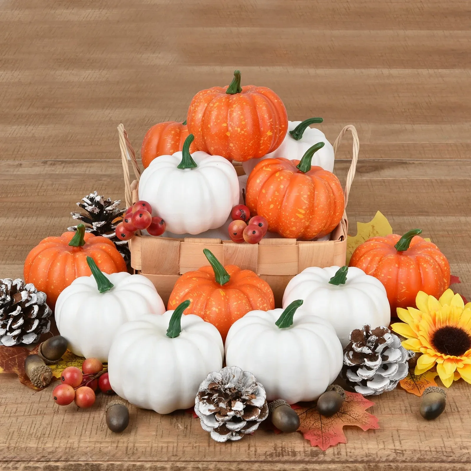 High quality: Our fake pumpkins are handmade by craftsmen, realistic and exquisite without fading. The appearance and size of the simulated crop set are the same as real vegetables, and it is difficult to distinguish authenticity without careful observation or weighing. Thanksgiving decoration.