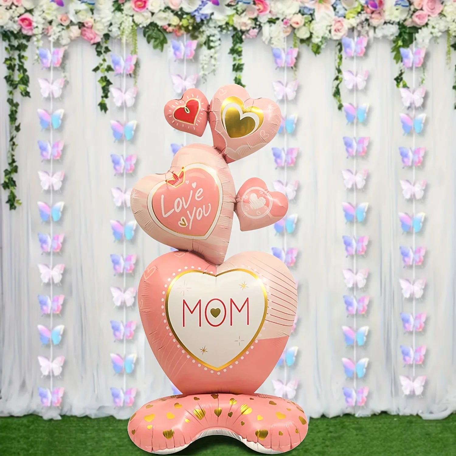 Celebrate the special women in your life with this stunning 60-inch oversized standing love mom balloon. Crafted from premium aluminum foil, this eye-catching decoration features a charming heart and letter design that's perfect for Mother's Day gatherings, birthday celebrations, or any occasion worth remembering. Its impressive size commands attention in any space, while the durable construction ensures it stays picture-perfect throughout your event. Whether you're planning an intimate family dinner or a festive party, this versatile balloon adds elegance and heartfelt sentiment to your décor. Make mom feel truly cherished with a decoration as remarkable as she is.