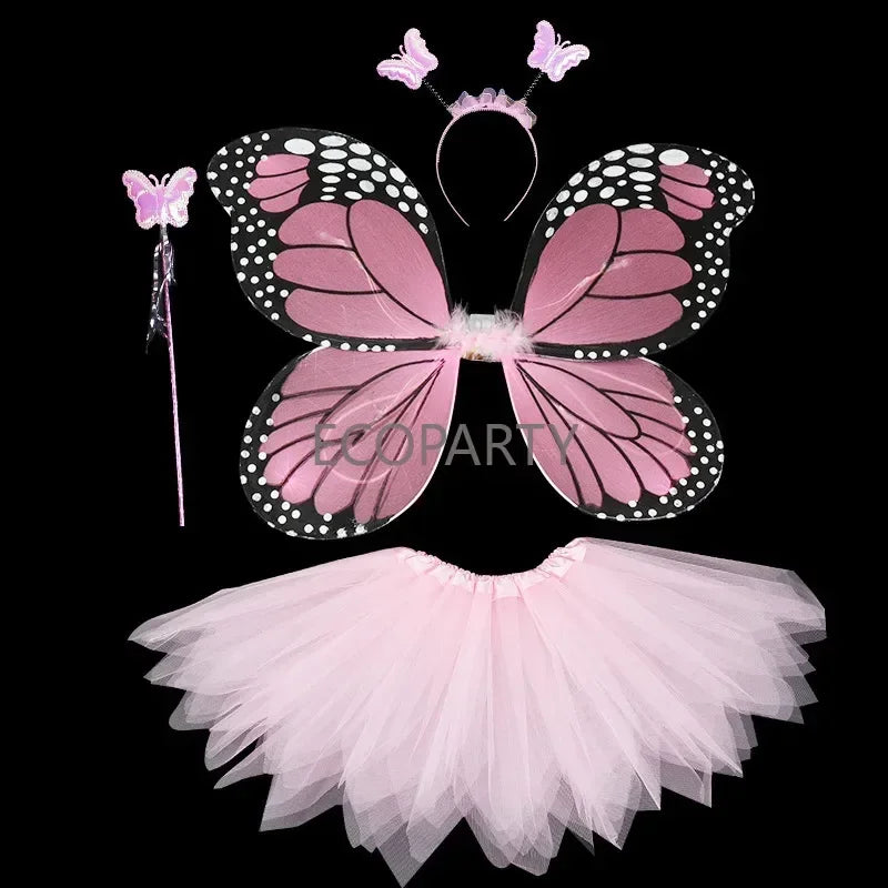 4Pcs Hot Sale Halloween Cosplay Fairy Angel Wings Insect Theme Costume For Kids Girls Butterfly Wings Costume Performance Dress