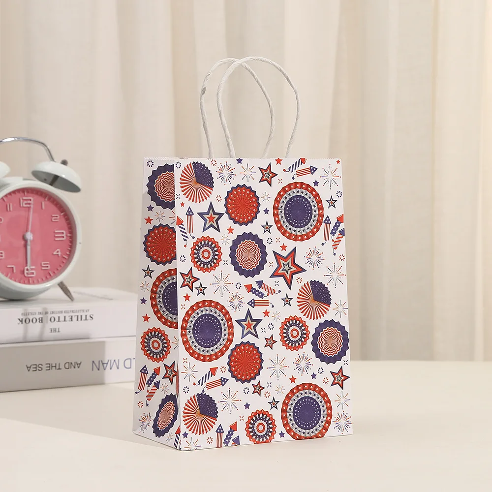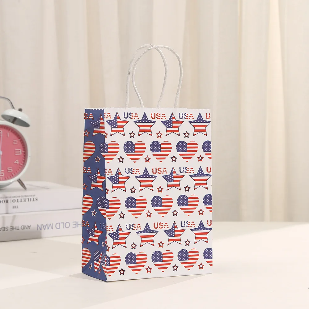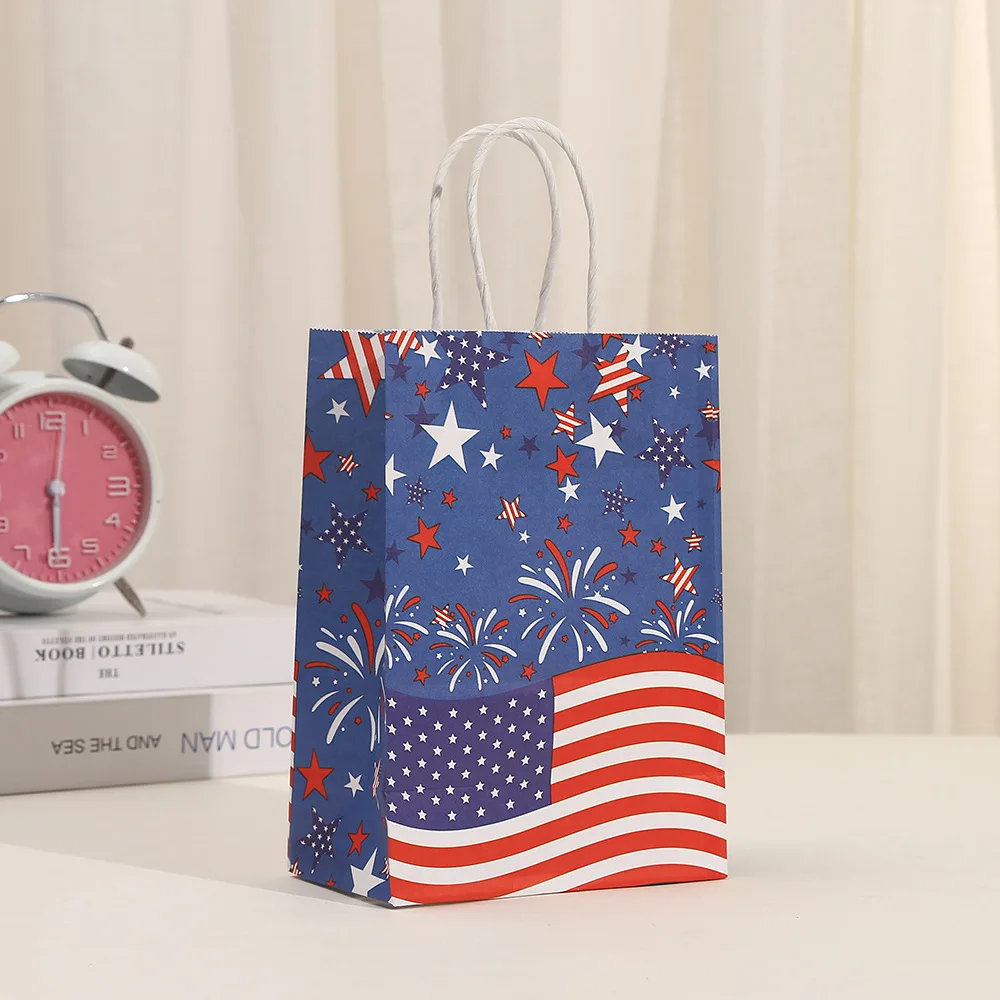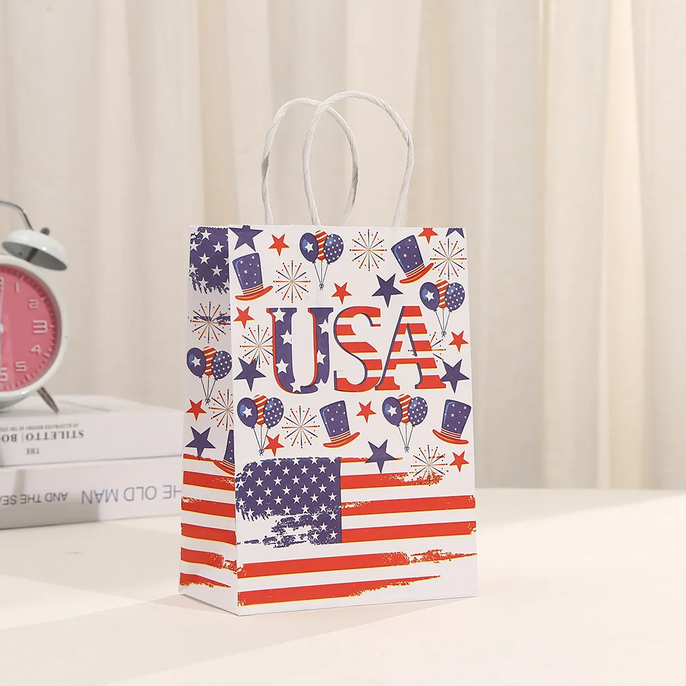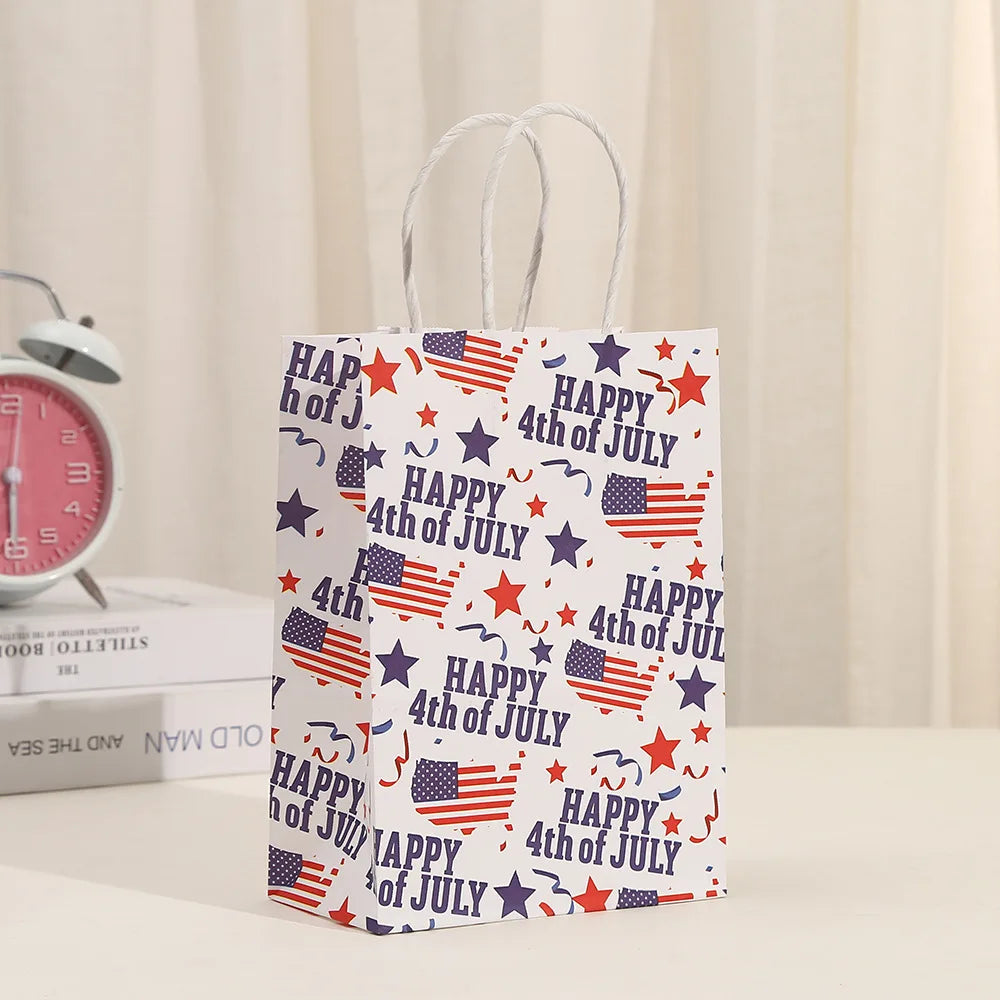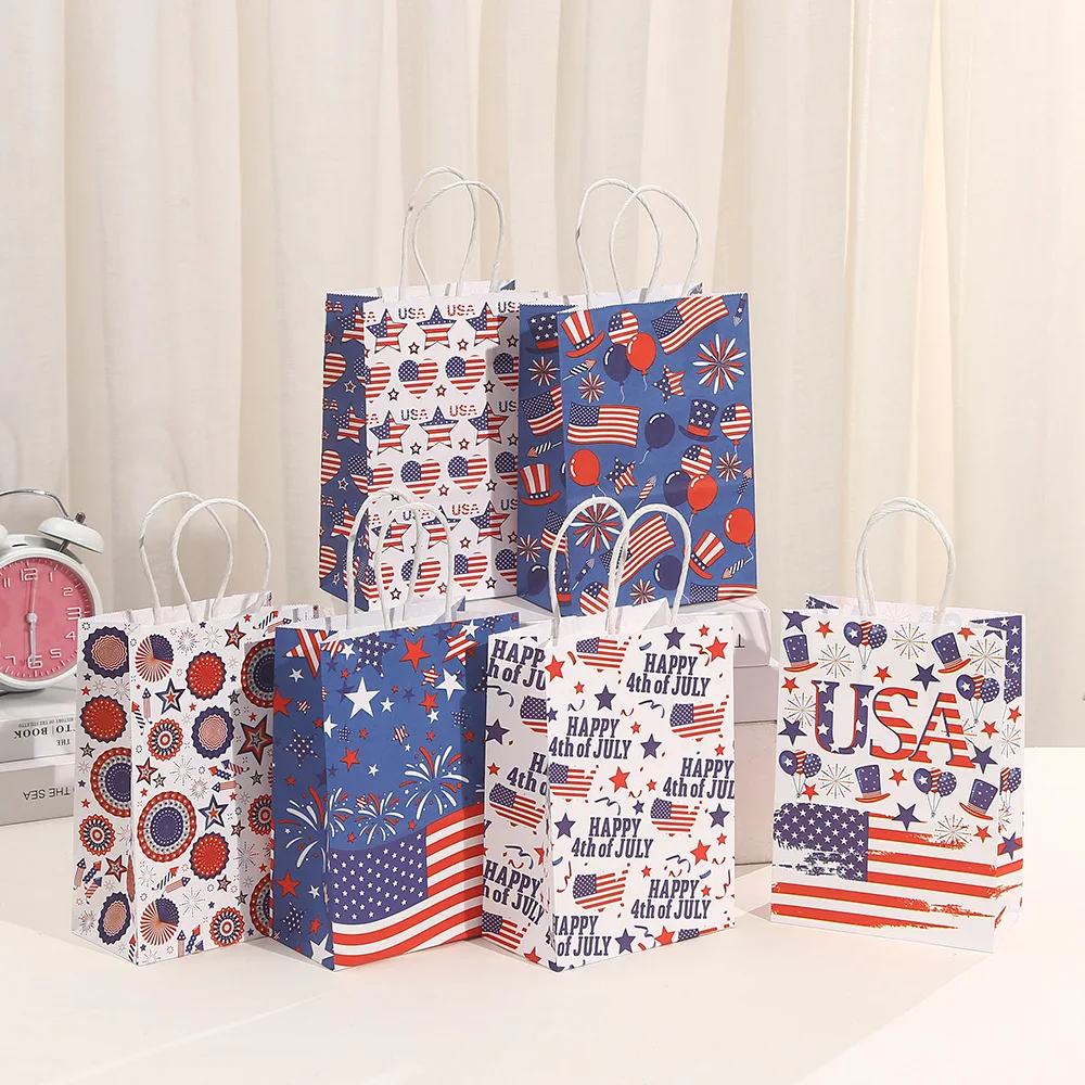 6Pcs Independence Day Theme Party Paper Gift Bags American Flag Patriotic Candy Packing Bag 4th of July Party Party Decoration