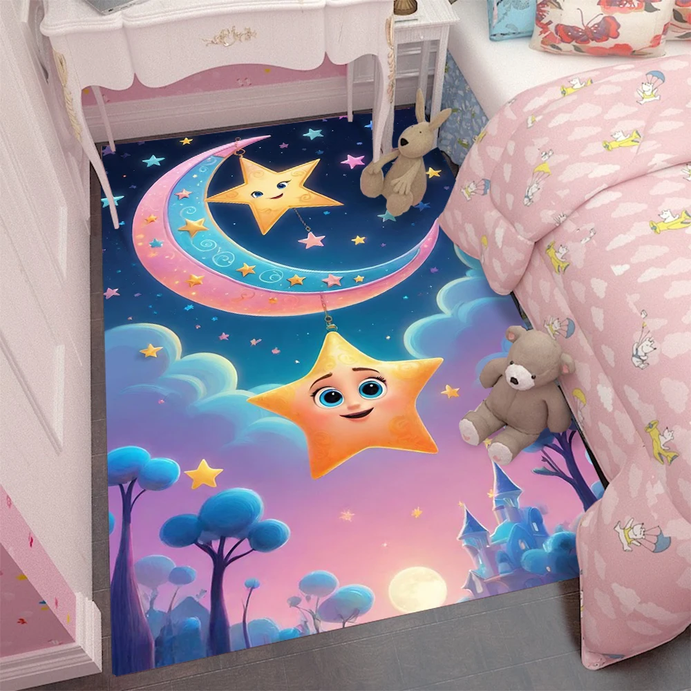 Cartoon Cute Children Carpet Living Room Kids Crawling Stars Play Mats Boy Girl Home Bedroom Bedside Decor Soft Non-slip Rugs