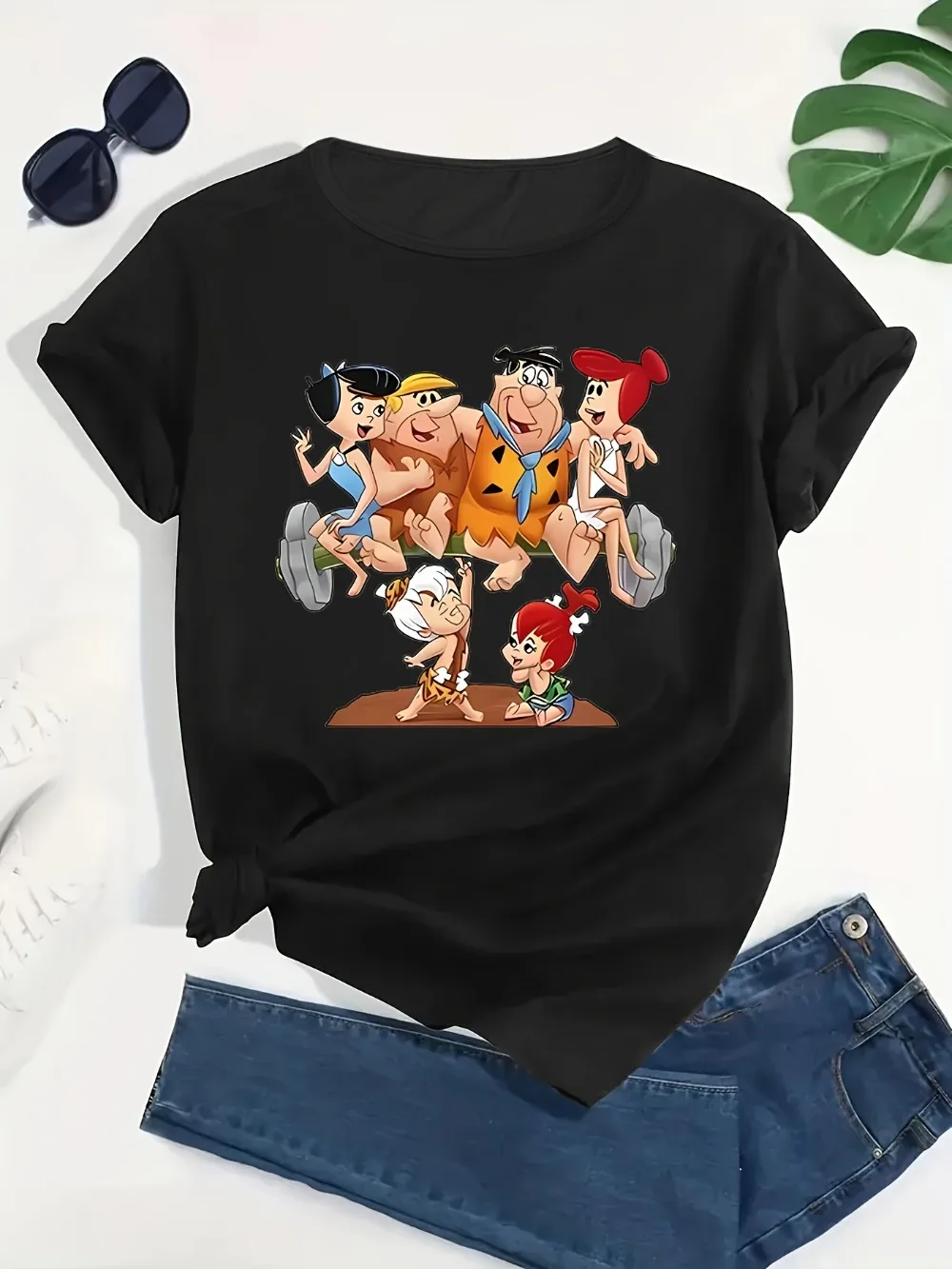 Crew Neck T-Shirt made of a polyester blend with medium stretch, designed as a casual knit top featuring a classic cartoon character graphic, suitable for women.