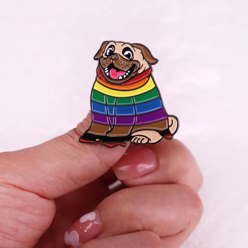 Cute rainbow animal pride Pug dog Enamel Pin LGBT brooch badge jewelry birthday gift