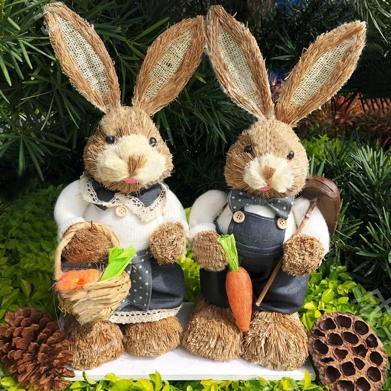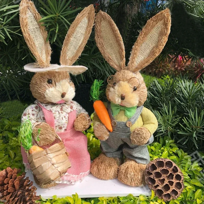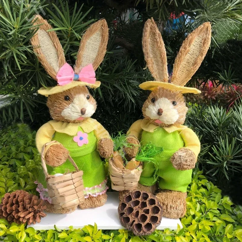 Easter Rabbit Decoration Bunny Figure Cattail Craft Ornament Home Holiday Cute Bunny Home Decoration Easter Rabbit Decoration