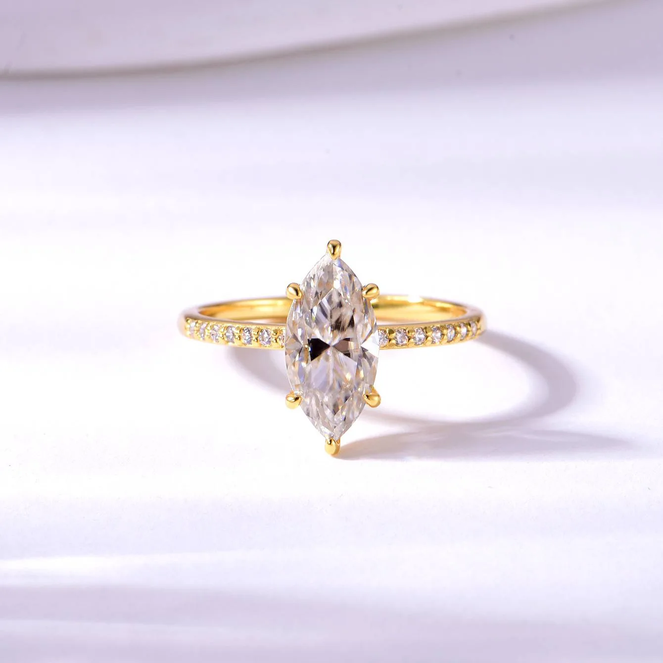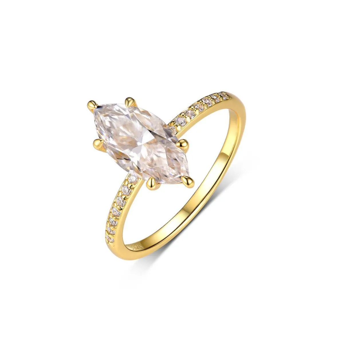 Fashion 2ct Marquise 18k Plated D Color Moissanite Ring For Woman 925 Sterling Silver Jewelry Woman's Moissanite Diamond Ring