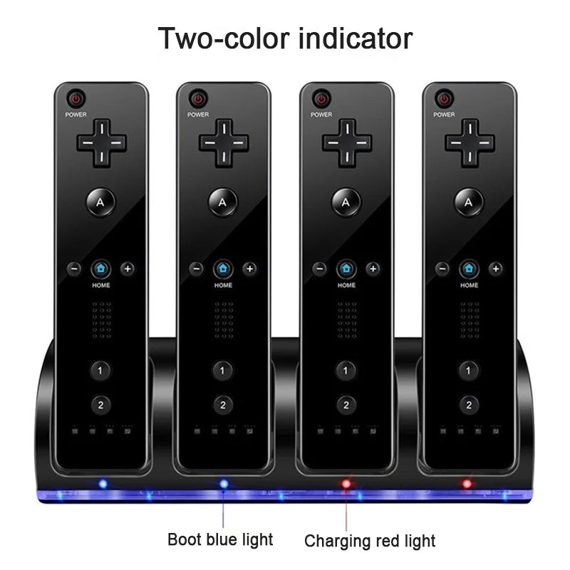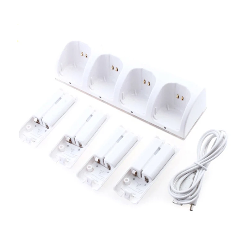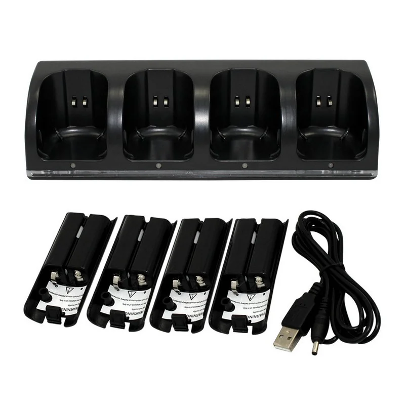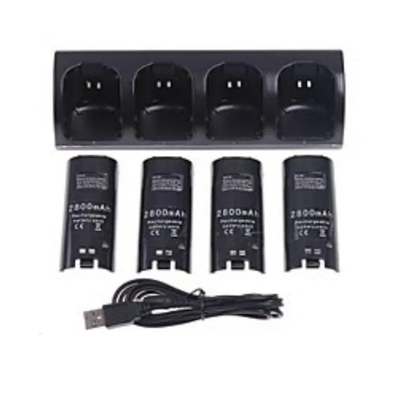 4 Port Charger Dock Charging Dock Station + 4pcs 2800mAh Batteries + USB Cable for Wii Remote Controller Gamepad Battery Charger