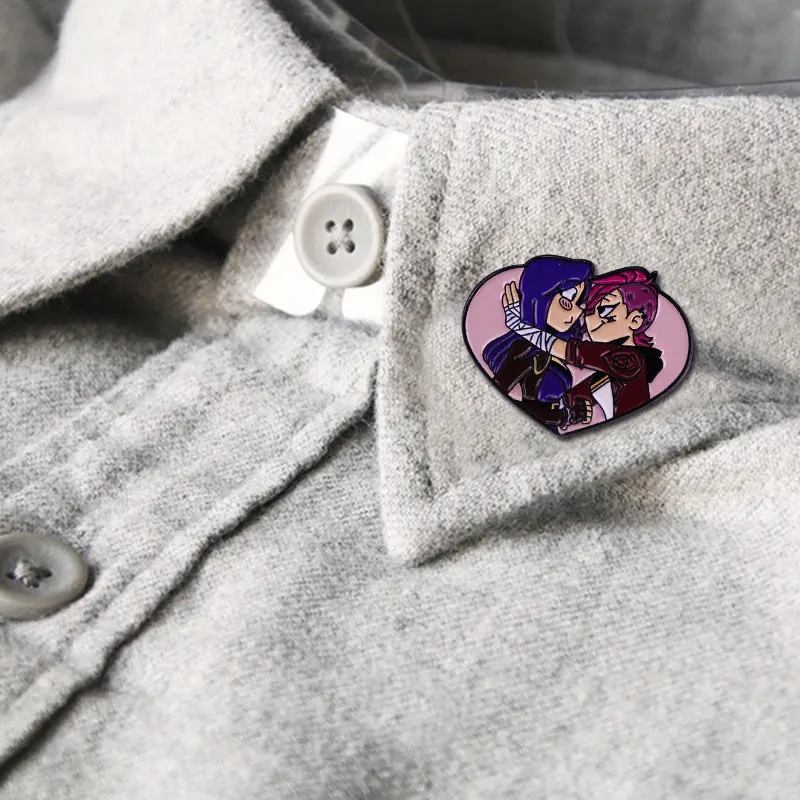 game league of legends Vi and Cait enamel pin brooch LGBT love heart badge Backpack Collar Pins Hat Jewelry accessories