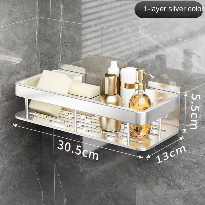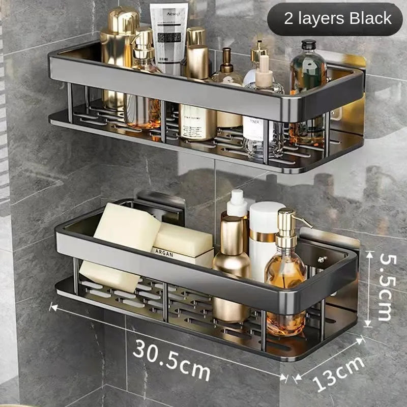 Luxury Bathroom Shelves Without Drilling Rustproof Aluminum Shower Wall Shelf Shampoo Towel Holder Bathroom Organizer Accessorie