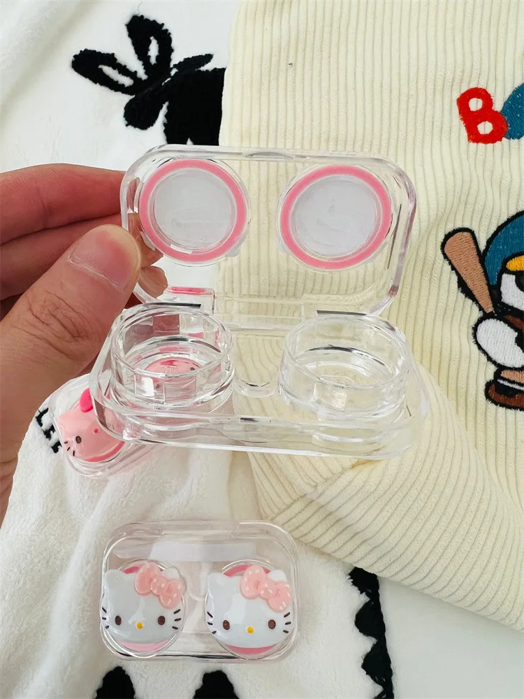 Keep your contact lenses safe and stylish with this charming Hello Kitty contact lens case. Crafted from durable plastic, this transparent case features the beloved Hello Kitty design that adds a touch of personality to your daily eye care routine. Free from harmful chemicals, it's a reliable choice for lens storage and protection. The compact, portable design makes it perfect for travel or everyday use. Whether you're a Hello Kitty fan or simply looking for a functional lens case with character, this adorable accessory combines practicality with playful style.