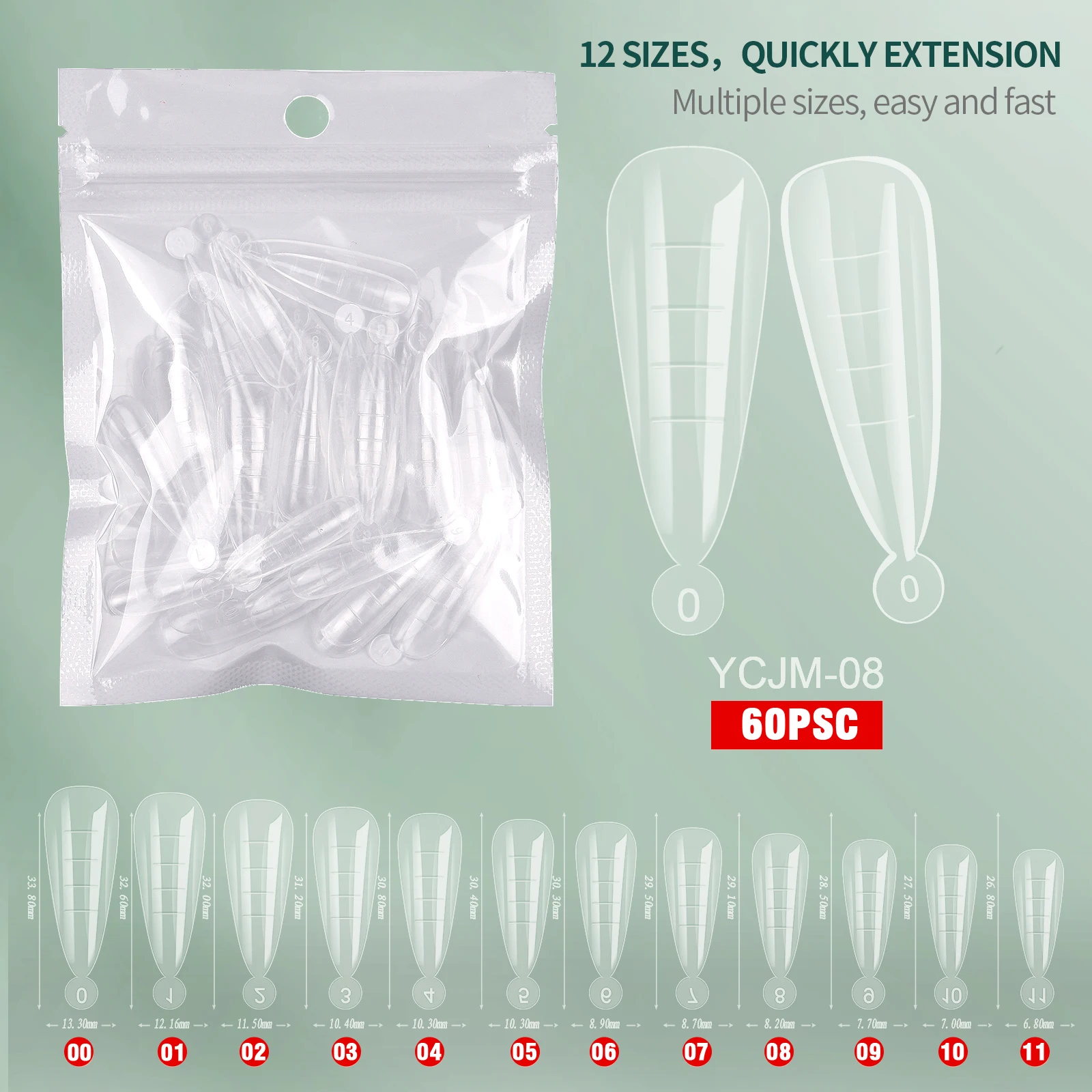 Full Size Package: 120g Extension Nail Gel in 6 different colors, 120 pcs nail molds in 2 shapes, each shapes in 12 sizes, 1pc* extension gel dual forms pen, 2 pcs*15ml gel base and top coat, 1 File and 1 Buffer, 1pc*30ml slip solution,2pcs*Nail Clip,1pc*Cups for Nail Art .
