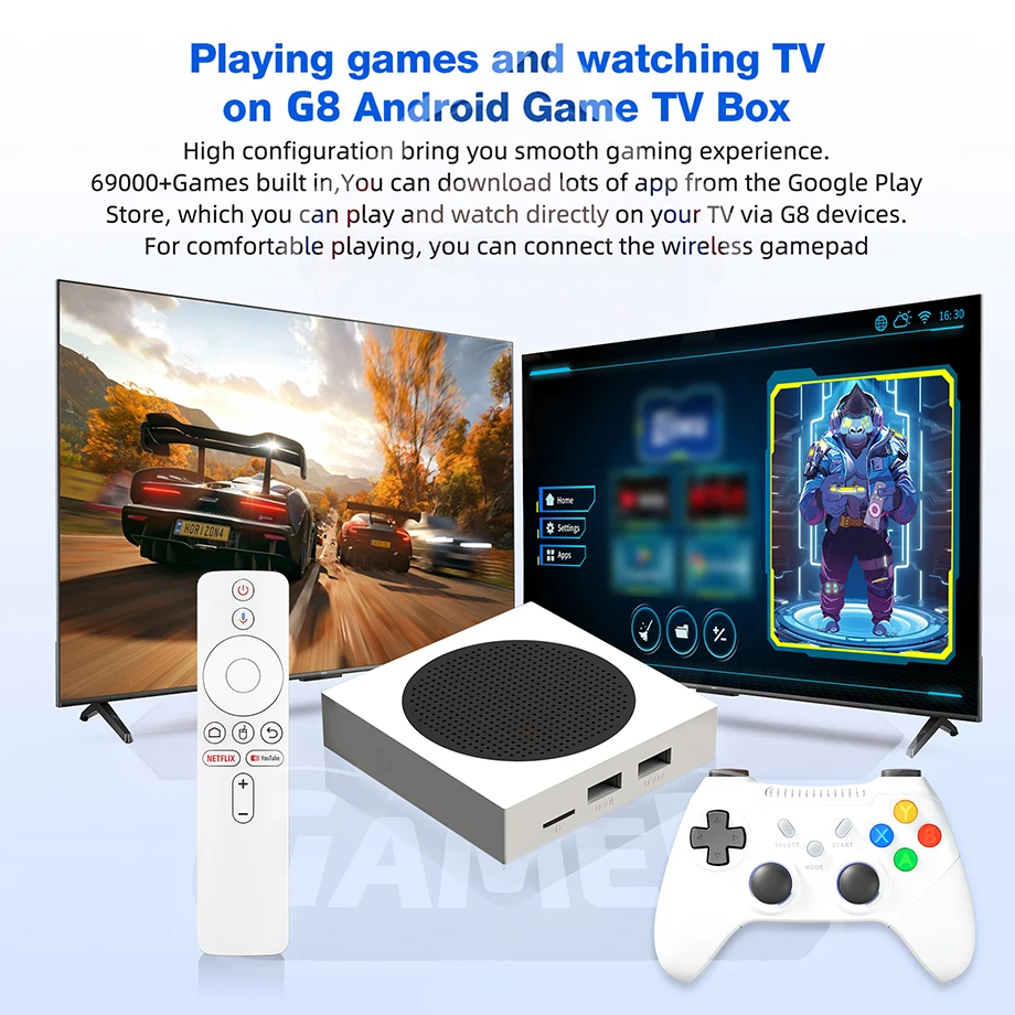 S G8 Game Console Dual Systrem Android TV Game Box 128GB 60000+ Games Android 14 Amlogic S905Y2 Dual Wireless Controllers