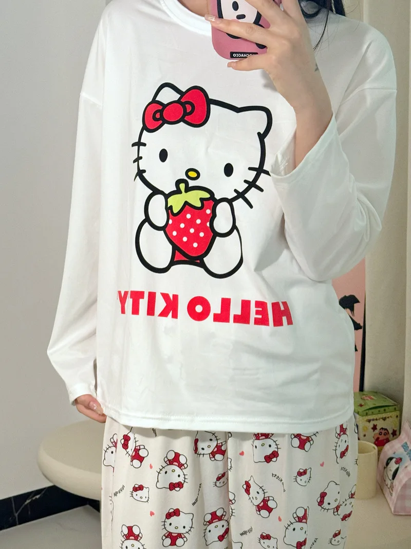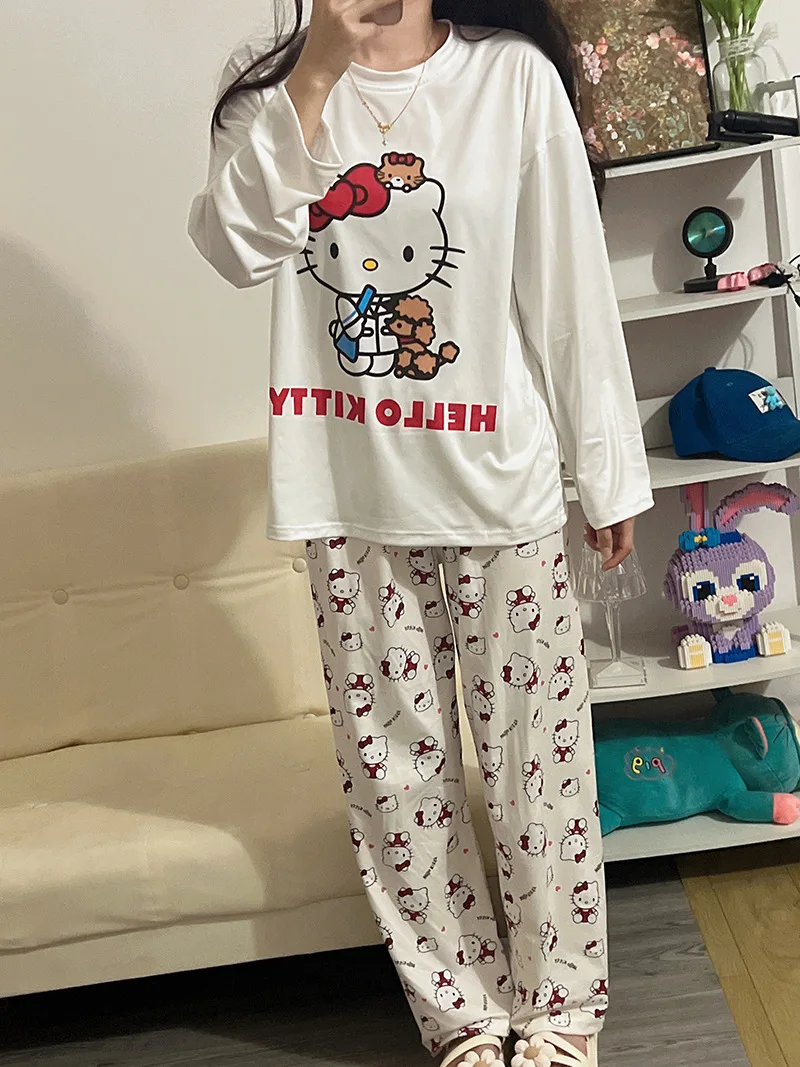 Sanrio Hello Kitty Pajamas Set Home Wear Polyester Long Sleeve