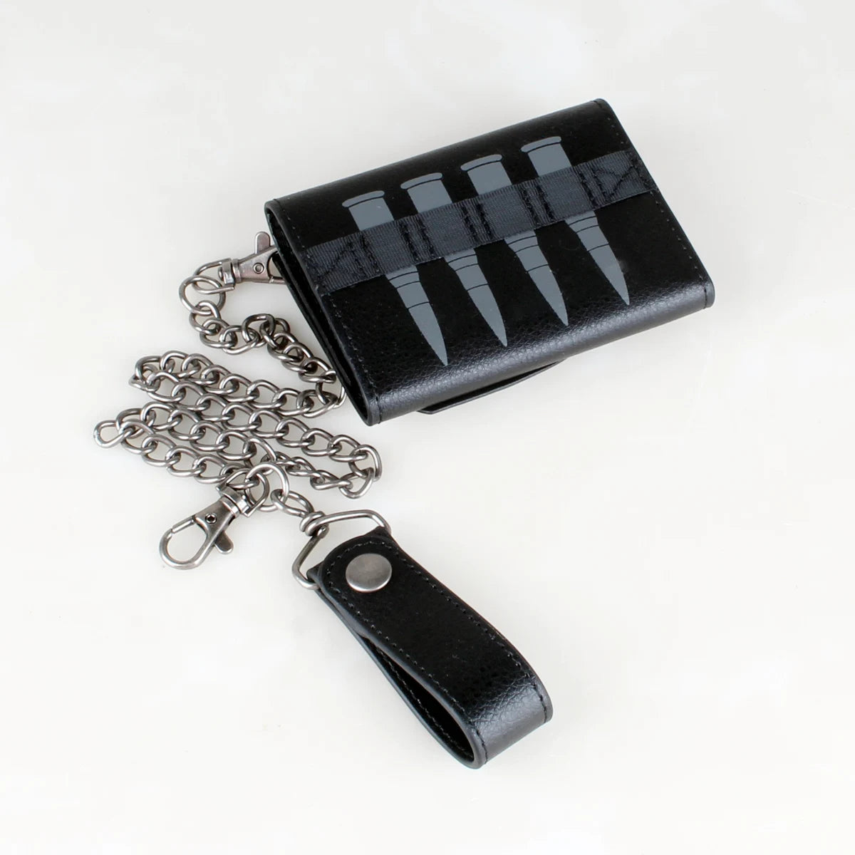 Skull Hip Hop Wallet With Chain, PU Leather Trifold Wallet