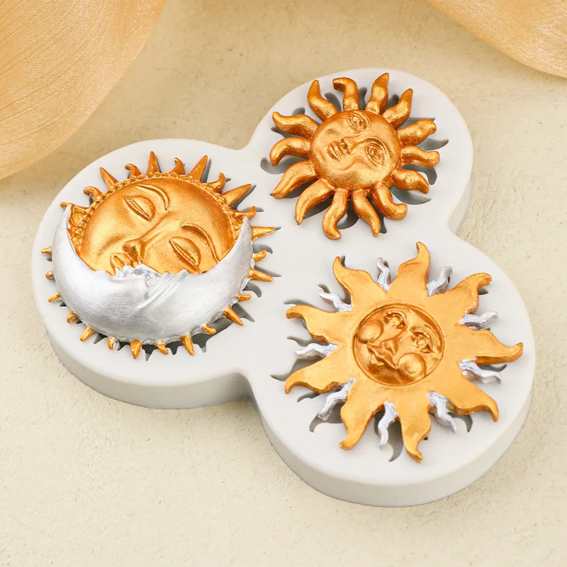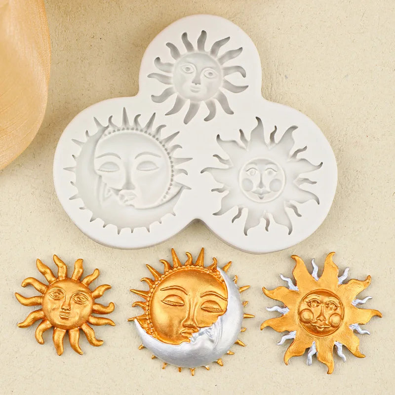 Sun Moon Face Fondant Silicone Mold DIY Cake Decorating Tool Sugarcraft Chocolate Clay Gumpaste Mold Cupcake Baking Tools