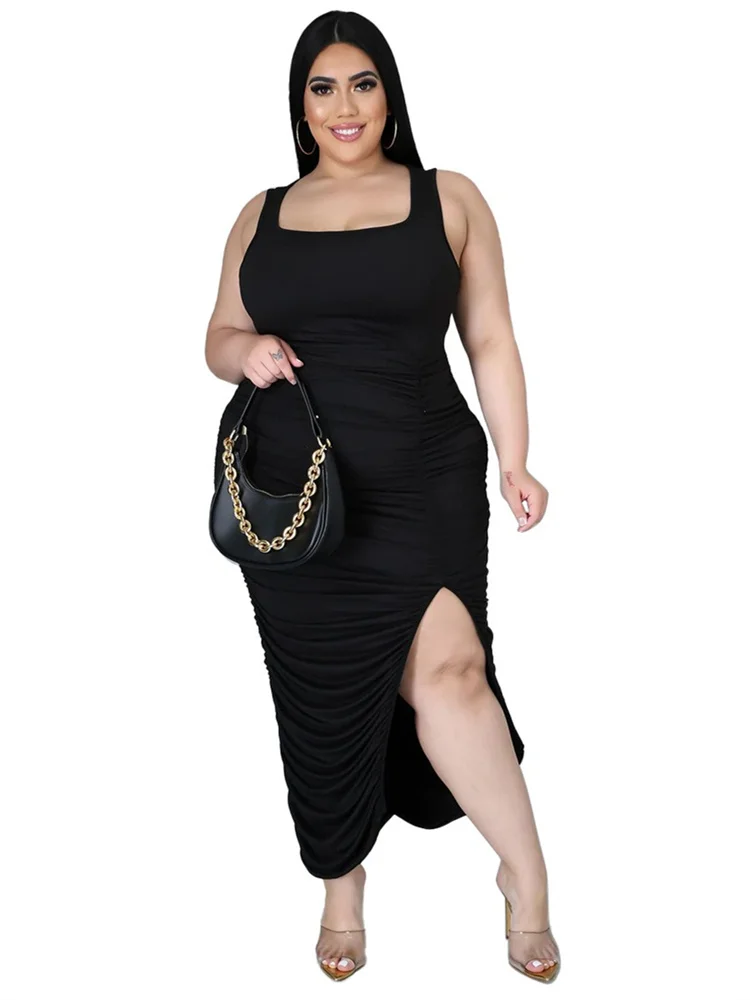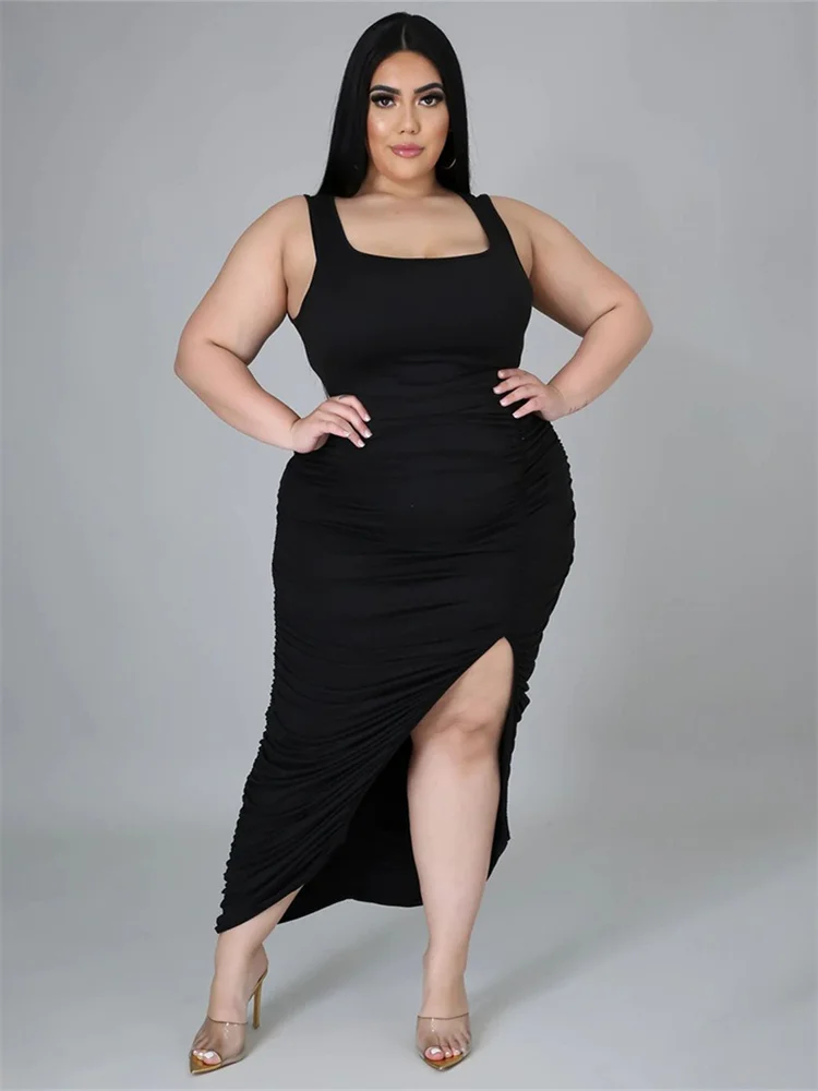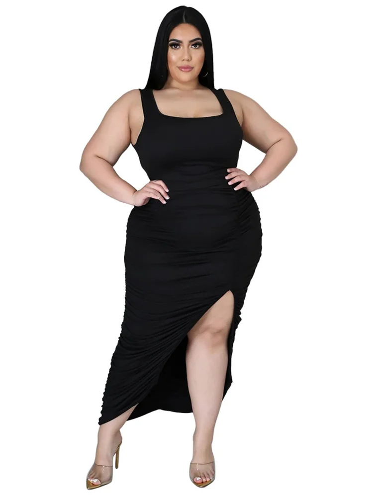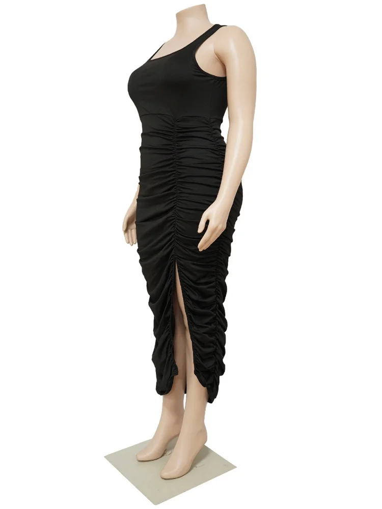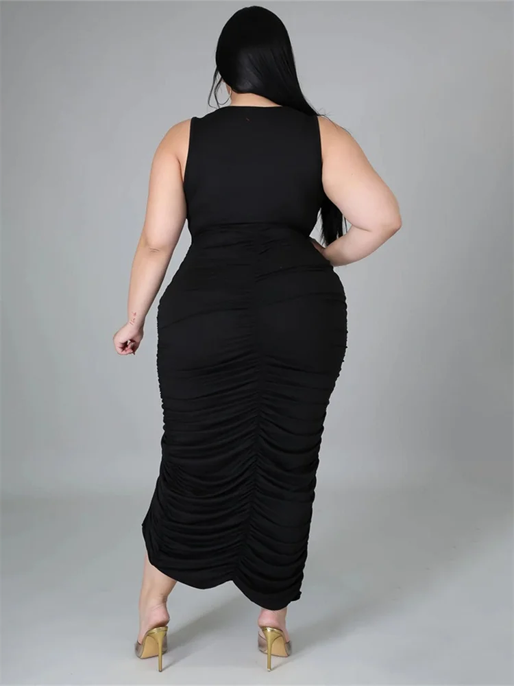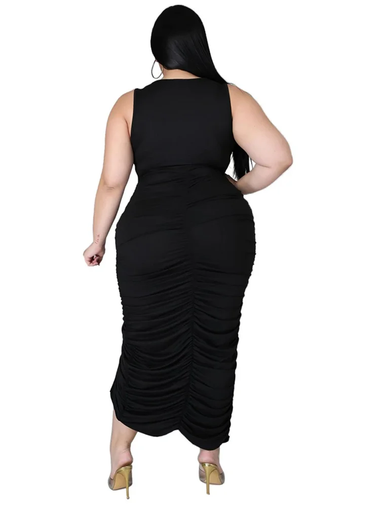 This plus‑size women’s mid‑calf dress blends comfort with a bold, sexy‑club aesthetic. Crafted from soft polyester using tatting weaving, it offers medium stretch for ease of movement while maintaining a smooth, flattering shape. The straight silhouette and natural waistline create a clean, elongated look, while the sleeveless cut and turtleneck neckline add a modern, confident edge. Draped detailing enhances the overall flow of the dress, and the printed pattern brings visual interest without overwhelming the design.
