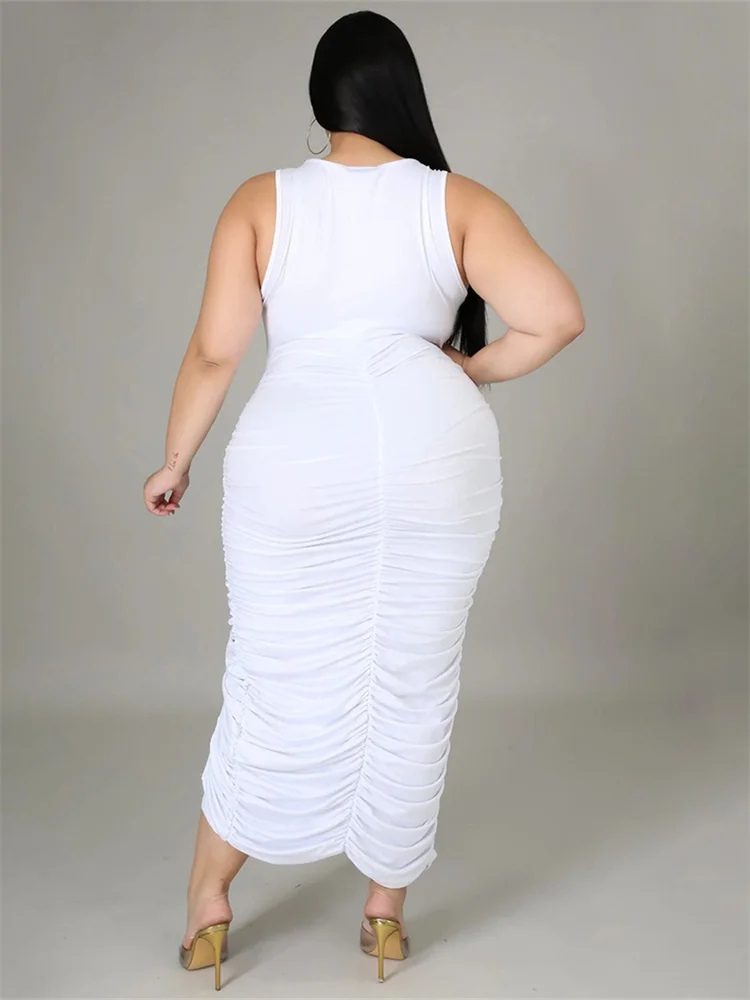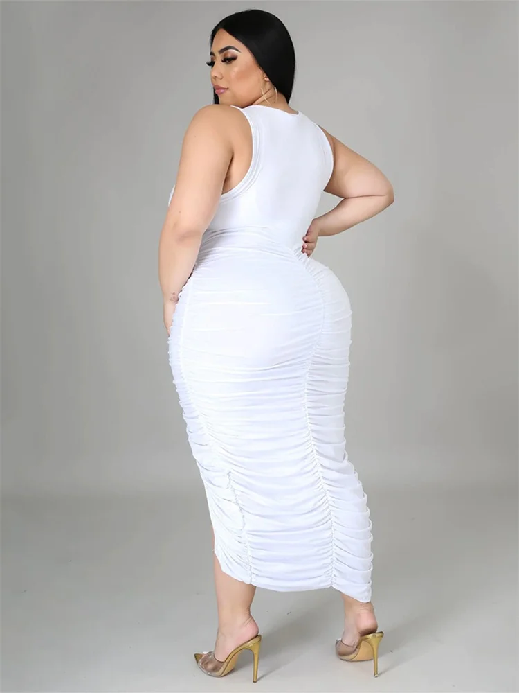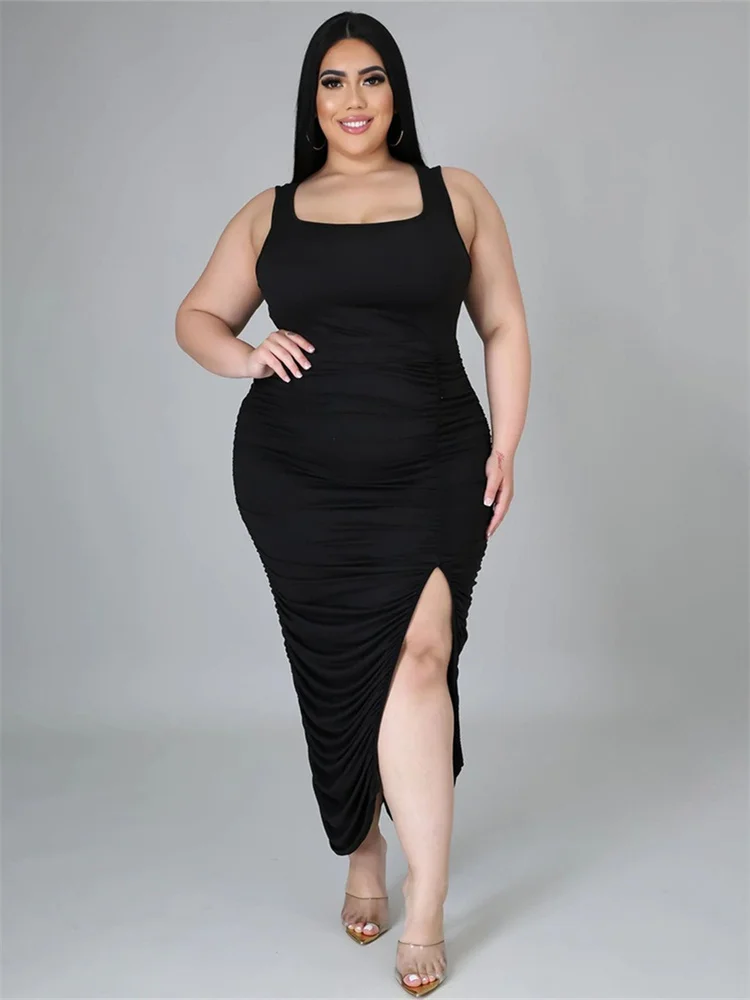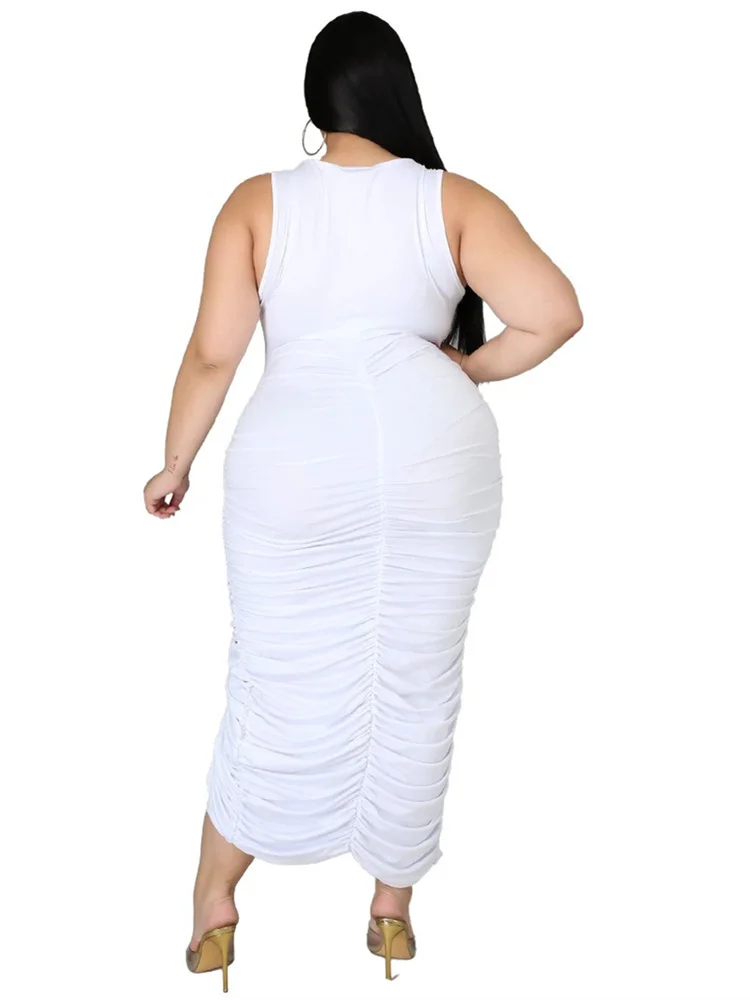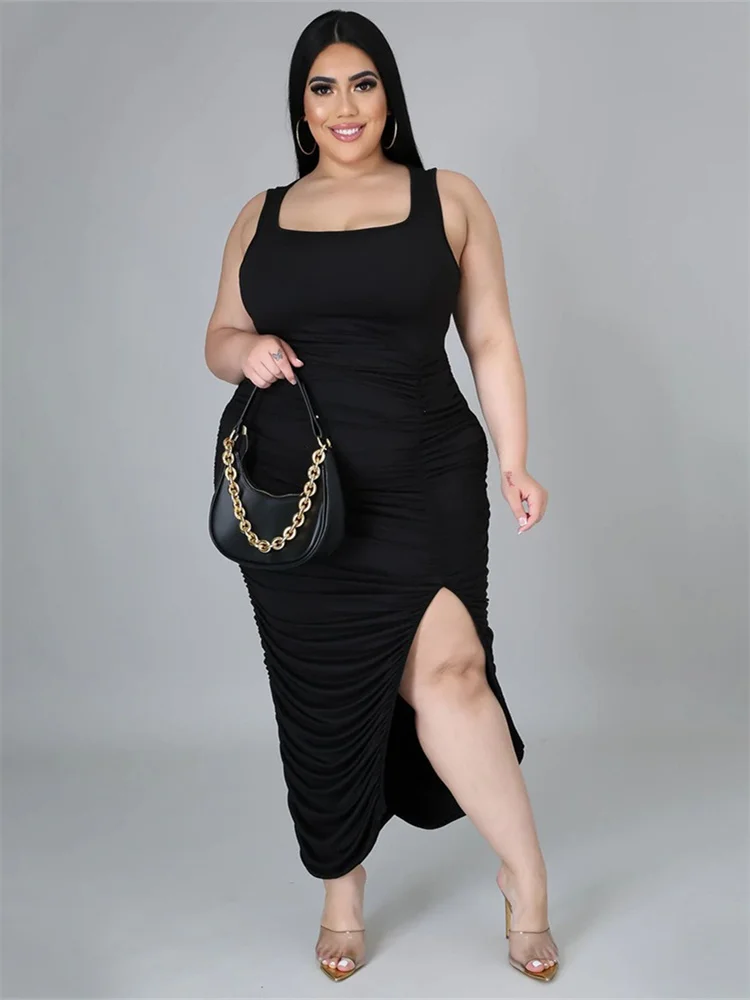 This plus‑size women’s mid‑calf dress blends comfort with a bold, sexy‑club aesthetic. Crafted from soft polyester using tatting weaving, it offers medium stretch for ease of movement while maintaining a smooth, flattering shape. The straight silhouette and natural waistline create a clean, elongated look, while the sleeveless cut and turtleneck neckline add a modern, confident edge. Draped detailing enhances the overall flow of the dress, and the printed pattern brings visual interest without overwhelming the design.
