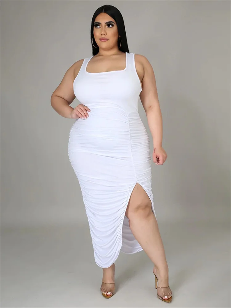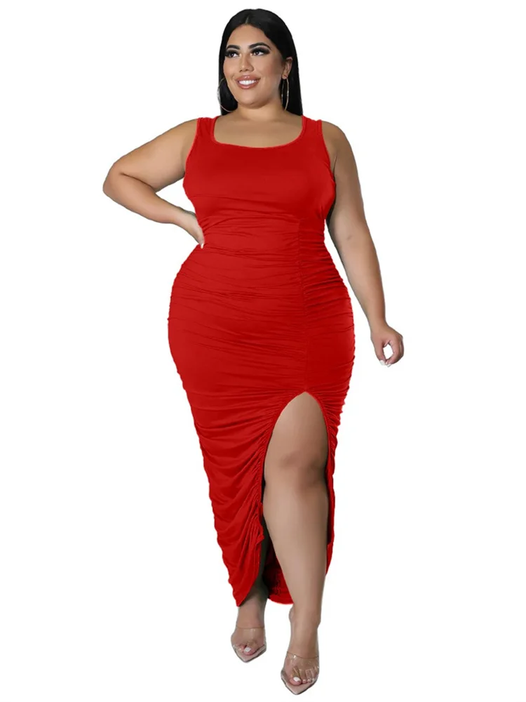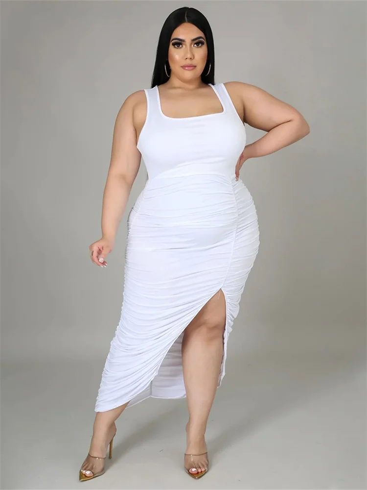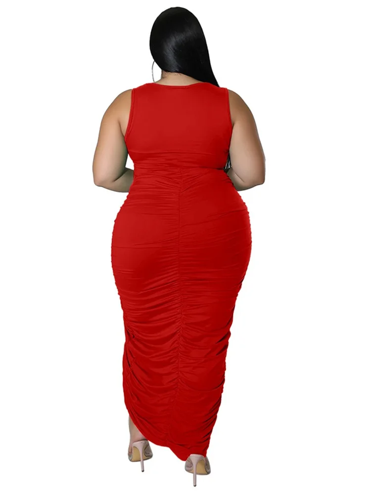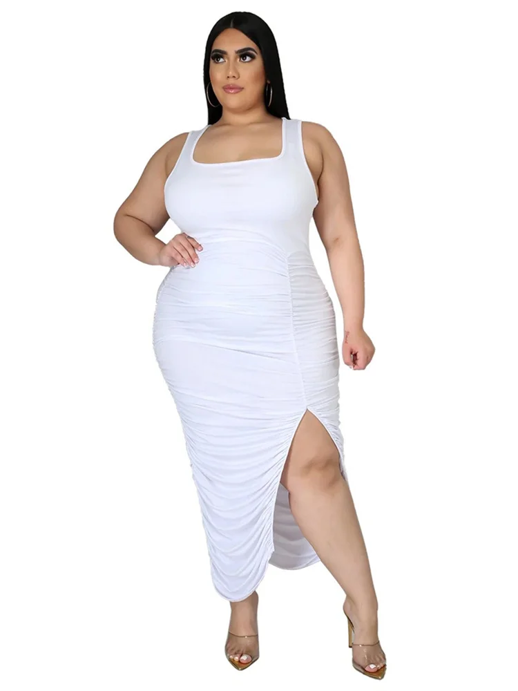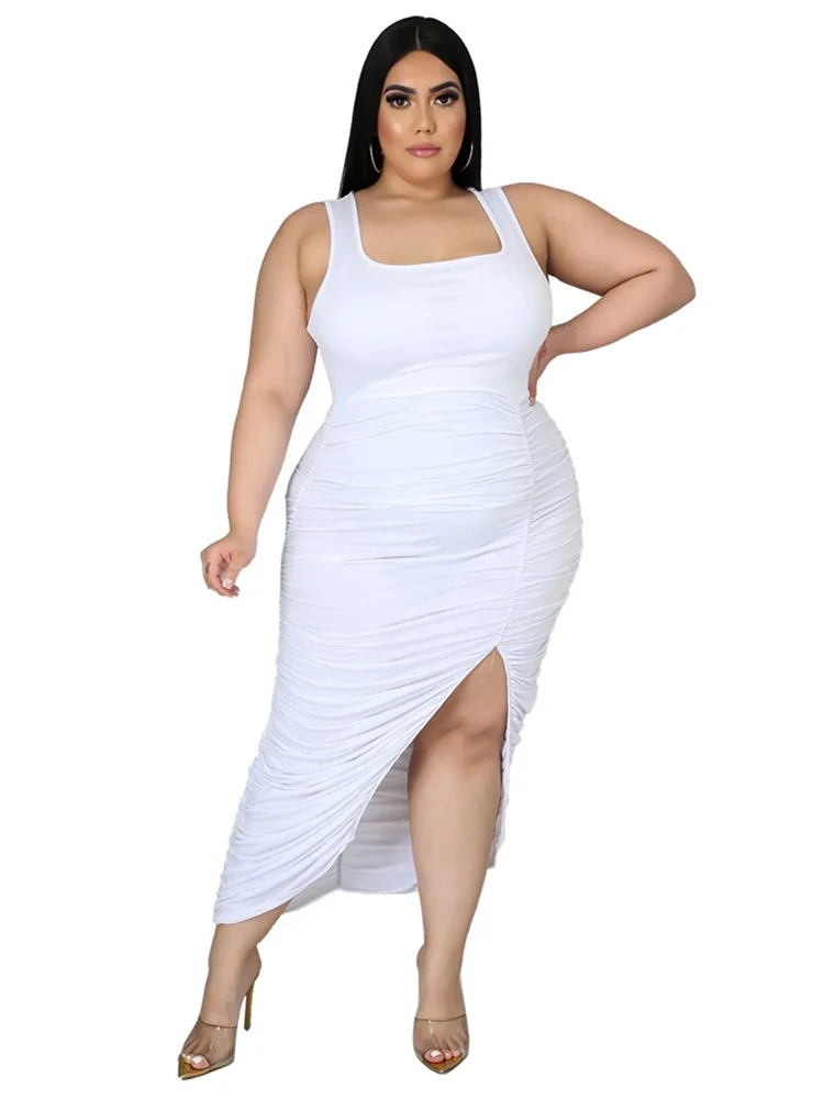 This plus‑size women’s mid‑calf dress blends comfort with a bold, sexy‑club aesthetic. Crafted from soft polyester using tatting weaving, it offers medium stretch for ease of movement while maintaining a smooth, flattering shape. The straight silhouette and natural waistline create a clean, elongated look, while the sleeveless cut and turtleneck neckline add a modern, confident edge. Draped detailing enhances the overall flow of the dress, and the printed pattern brings visual interest without overwhelming the design.